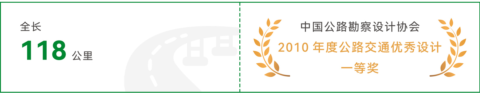 該項目全長 118.4 公里,地處丘陵山地,地勢起伏較大,河網(wǎng)密布,是平衡發(fā)展與自然的高難度工程。公司勘察設計團隊采用新技術新設備,結合實地勘察,選取了一條適合困難山區(qū)地形地域特征,同時有利于沿線土地開發(fā)及經(jīng)濟可持續(xù)發(fā)展的路線方案,合理地進行了支擋防護工程、橋隧工程、排水工程、三改工程的設計,實現(xiàn)了方案合理、結構安全、造價節(jié)約、景觀和諧的設計目標。施工過程中,公司技術骨干成立的設計代表組長期駐守施工現(xiàn)場,及時解決和指導施工過程中遇到的技術問題;配合業(yè)主對重點、難點工程進行技術研討,使得工程順利竣工。該項目榮獲 2010 年度中國公路勘察設計協(xié)會公路交通優(yōu)秀設計一等獎。