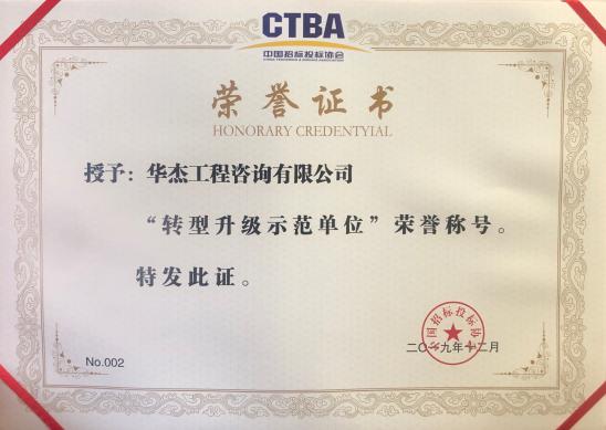 近日,中國招投標協(xié)會授予華杰公司“推動行業(yè)發(fā)展突出貢獻單位”、“轉(zhuǎn)型升級示范單位”兩項榮譽稱號。